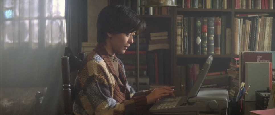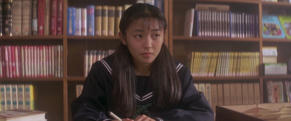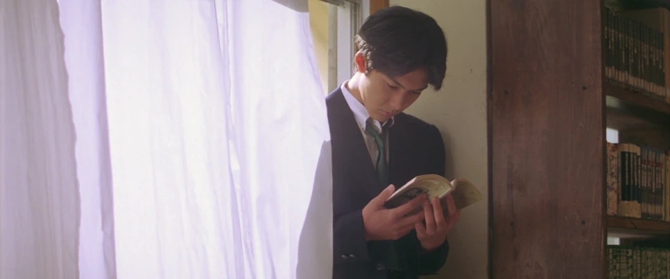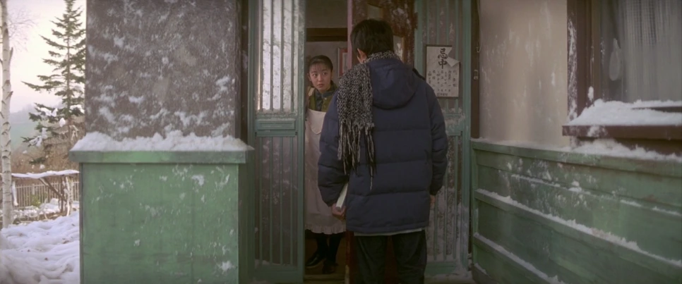 생각해보면 이 영화는 처음부터 끝까지 시야가 약간 뿌옇습니다. 그리고 전체적으로 희고 차가운 눈의 시린 푸른빛을 띠고 있어 신비로움을 조성하죠. 즉, 현실과 환상 사이의 구분이 잘 가지 않게 되는 것입니다. 학교 도서실에서 책을 읽고 있는 후지이가 커튼 너머로 사라졌다 나타났다 하는 장면도 마찬가지입니다.