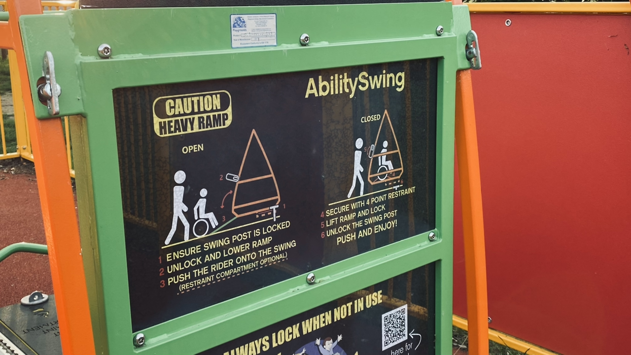 가장 먼저 보이는 건 네 종류의 각기 다른 그네. 일반적인 모양의 납작 그네와 그 옆에 부모와 아기가 마주 보며 함께 탈 수 있는 그네, 누워서 탈 수 있는 원형 그네, 그리고 휠체어 그대로 올라탈 수 있는 커다란 사각형 그네였다. 그중에 내 눈을 사로잡은 건 마지막 그네. 휠체어를 타고도 그네를 탈 수 있다고? 그런 그네는 들어본 적도 아니, 생각해본 적도 없다. Ability Swing(굳이 옮기자면 ‘만능 그네’쯤 되려나)이라고 적힌 그네에 선명하게 새겨져 있는 문장.
