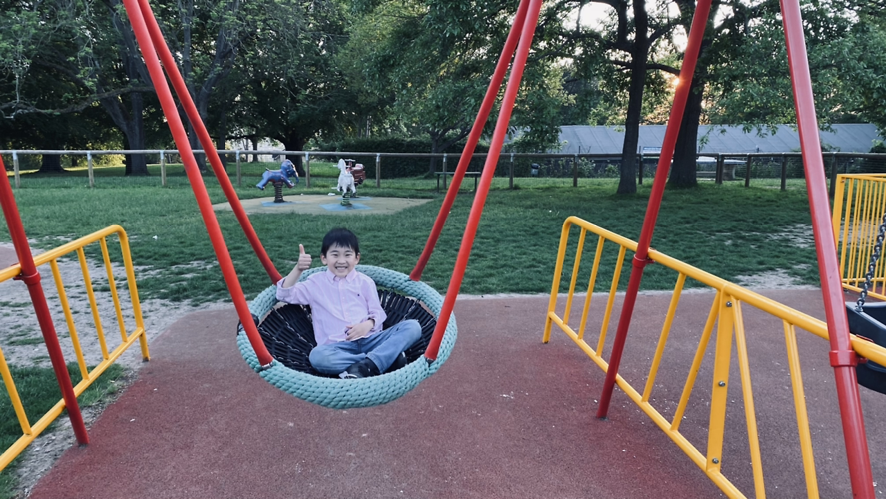 얼핏 보면 당연한 말 같지만 어떤 이에겐 당연하지 않다는 것을 안다. 그런데 누구도 소외되지 않는 놀이터라니 얼마나 근사한지. 놀이터에서 감동받기는 또 처음이다. 어른들이 보기엔 어지럽지만 아이들에게는 인기 만점인 회전무대, 일명 뺑뺑이도 좀 다르게 생겼다. 서서 탈 수 있는 자리와 휠체어가 들어갈 수 있는 자리, 유아들이 탈 수 있는 자리로 다양하게 칸이 나누어져 있었다. 바닥에 설치되어 있는 트램펄린도 휠체어를 타는 어린이 포함 누구나 이용할 수 있게 설계되었다고 한다. 그렇다. 이 놀이터는 말로만 듣던 무장애 놀이터였다. 우리나라에도 몇 군데 있다고 듣긴 했지만 직접 가본 적은 없었는데 여행지에서 이렇게 만나게 되다니!