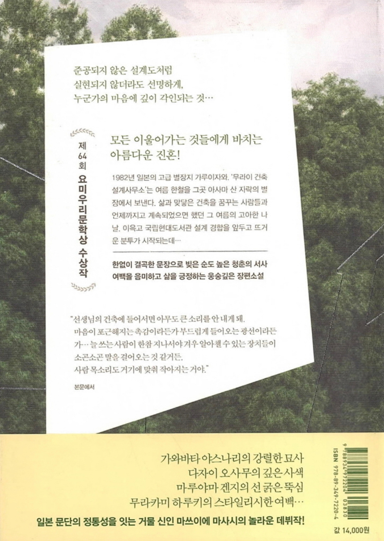 마쓰이에 마사시의 <여름은 오래 그곳에 남아>는 아름답고 세밀한 묘사가 돋보이는 책이다. 그중 가장 인상적이었던 부분은 일하는 사람들의 태도였다. 작은 디테일 하나 놓치지 않는 선생님을 닮아 ‘무라이 건축설계사무소’ 직원들은 다들 비슷한 데가 있었다.