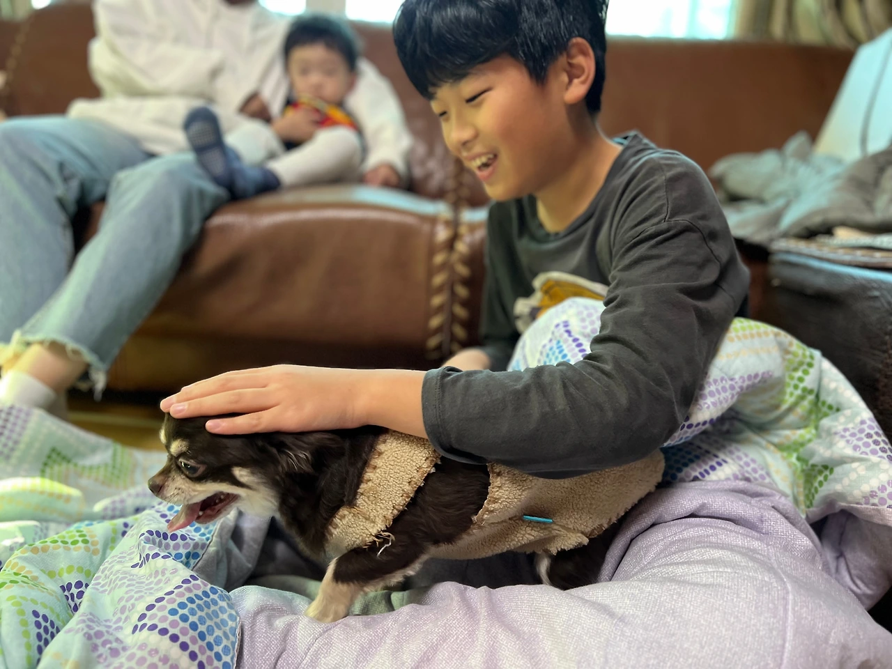 작년 가을부터 자기 방이 생긴 형제들은 이제 자기 방에서 숙제를 하고, 음악을 듣고, 책을 읽는 등 혼자만의 시간을 즐기는 비율이 높아졌다. '이러다 방문을 쾅 닫고 들어가 틀어박히는 날이 오겠지...' 싶을 때 슬며시 믿는 구석이 있다. 주위 반려견을 키우는 분들과 얘기하면 "사춘기 아이 방문을 열 수 있는 유일한 존재가 강아지다. 강아지가 있어서 아이들이 거실로 나온다."는 말씀을 많이 하신다. 우리도 마루와 함께 살기 시작하면서 대화 주제도 더 다양해지고, 나눌 얘기도 많아졌다. 아이들이 마루를 막냇동생처럼 여기고 귀여워해주는 모습을 보면 같이 살기 참 잘했다는 생각이 든다.