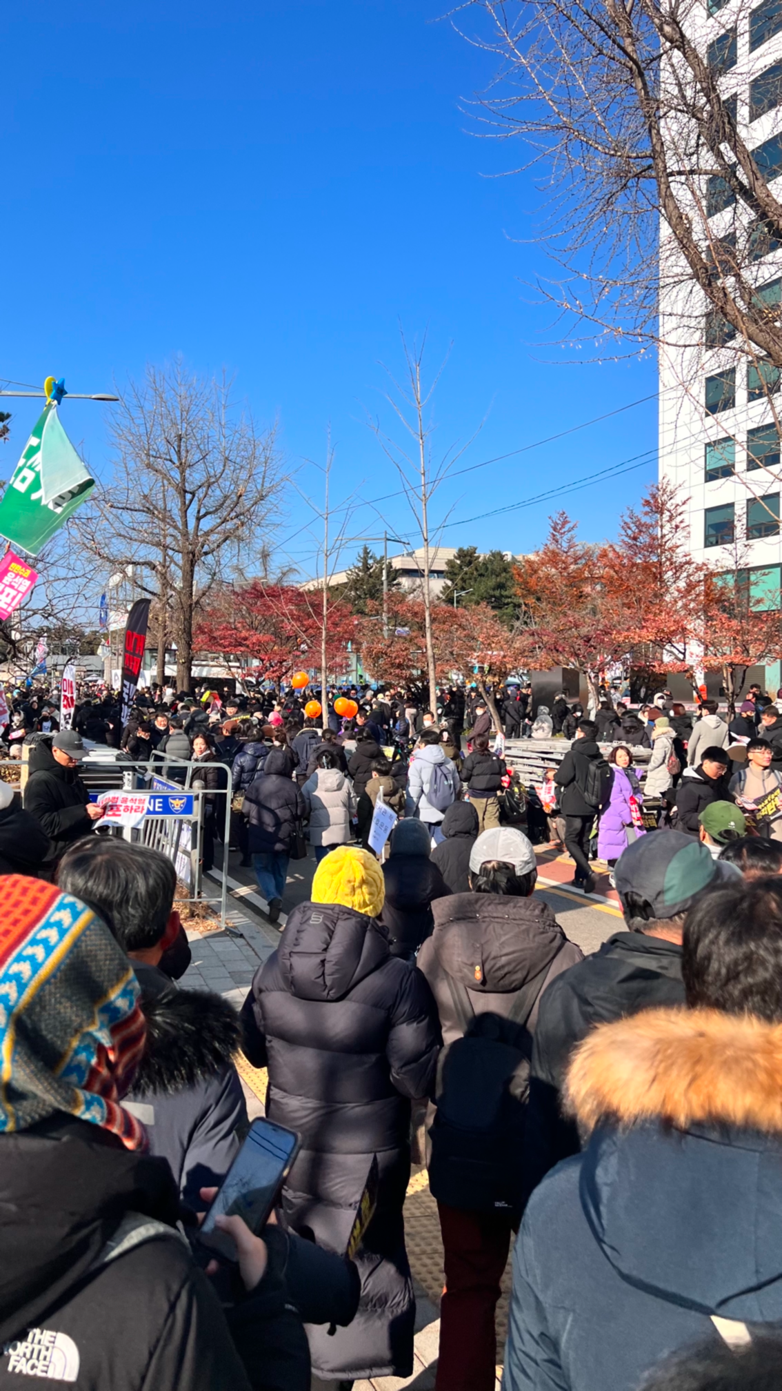 마음 같아서는 탄핵 표결이 있을 때까지 있고 싶었지만 집에 아이들을 두고 왔고 컨디션도 좋지 않아 오래 머무를 수는 없었다. 그 사이 국회의사당역과 여의도역은 무정차 통과라고 해서 여의도 공원을 지나 여의나루역까지 걸어가기로 했다. 앞쪽은 앉아 있는 자리와 지나다닐 수 있는 통로가 잘 확보되어 있었지만 뒤로 갈수록 안쪽으로 들어오려는 사람과 나가려는 사람이 뒤엉켰다. 심약한 나는 이러다 대형 사고로 이어질 수도 있다는 생각에 순간적으로 두려움이 엄습했다. 앞서가는 남편을 따라 밀지 않고 넘어지지 않으려고 애쓰면서 천천히 빠져나왔다. 아무도 화내거나 눈살을 찌푸리는 사람이 없다는 것도 인상적이었다. 서로 어떤 마음으로 나왔는지 알기에, 작은 사고도 있어서는 안 되기에 서로 조심하는 것이 느껴졌다.