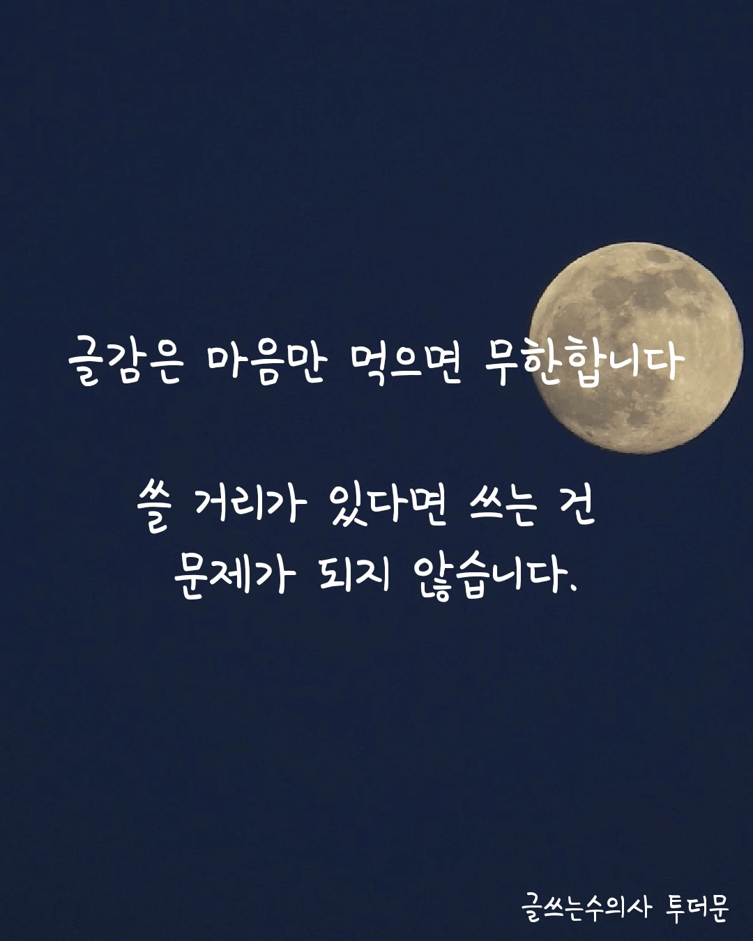 즉 우리가 마음만 먹고 글쓰기에 관심을 갖고 몰입만 하면 글감은 무한합니다.