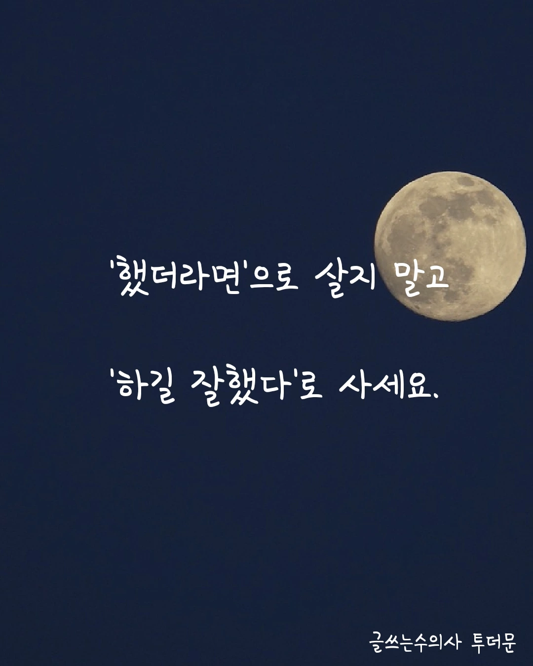 https://t.co/LXO0FQiH8S 그래도 해보길 잘했다. 하지 않았다면..(큰일 날뻔했다) 하길 잘했다. 해봐서 다행이다. 이런 말이 나오도록 살자. 그게 후회를 덜 하는 삶이다.