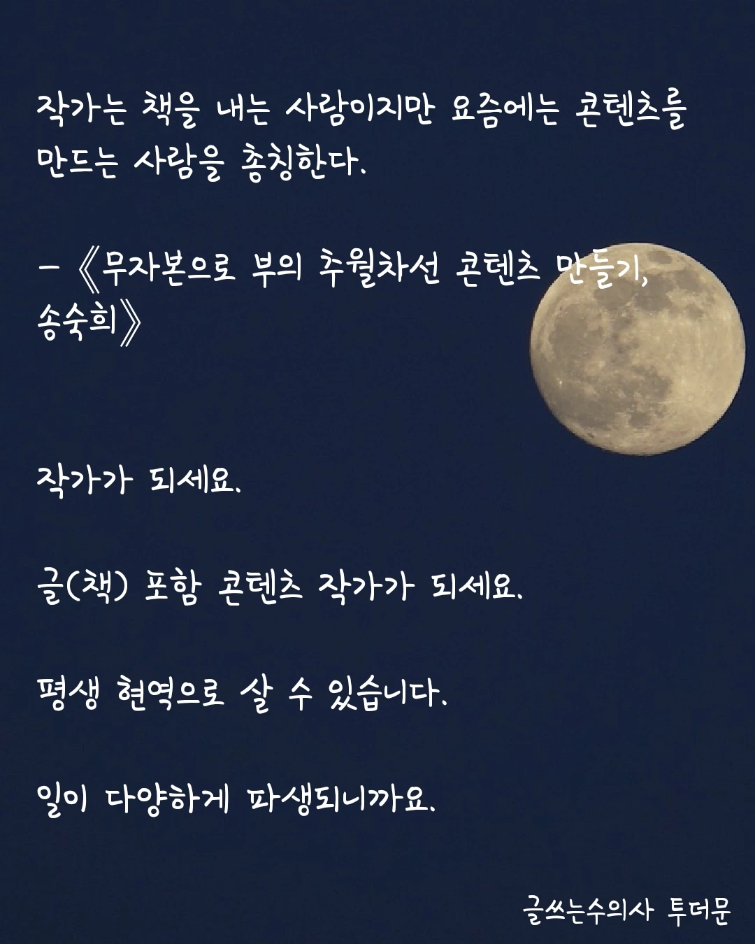 작가는 책을 내는 사람이지만 요즘에는 콘텐츠를 만드는 사람을 총칭한다.