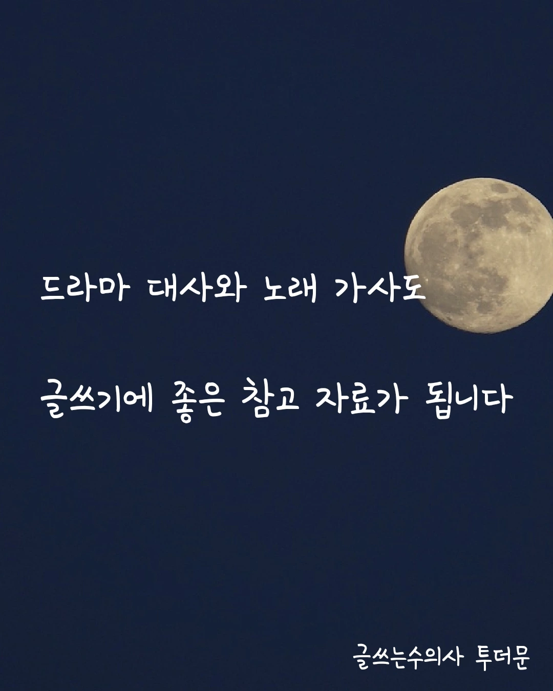 "드라마 대사나 노래 가사에 관심 갖는 것도 글쓰기에 도움이 되겠구나."