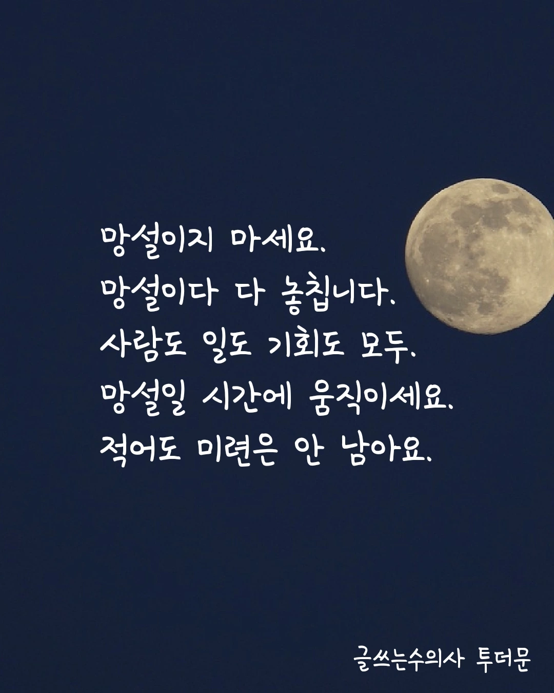 망설일 시간에 움직이세요.