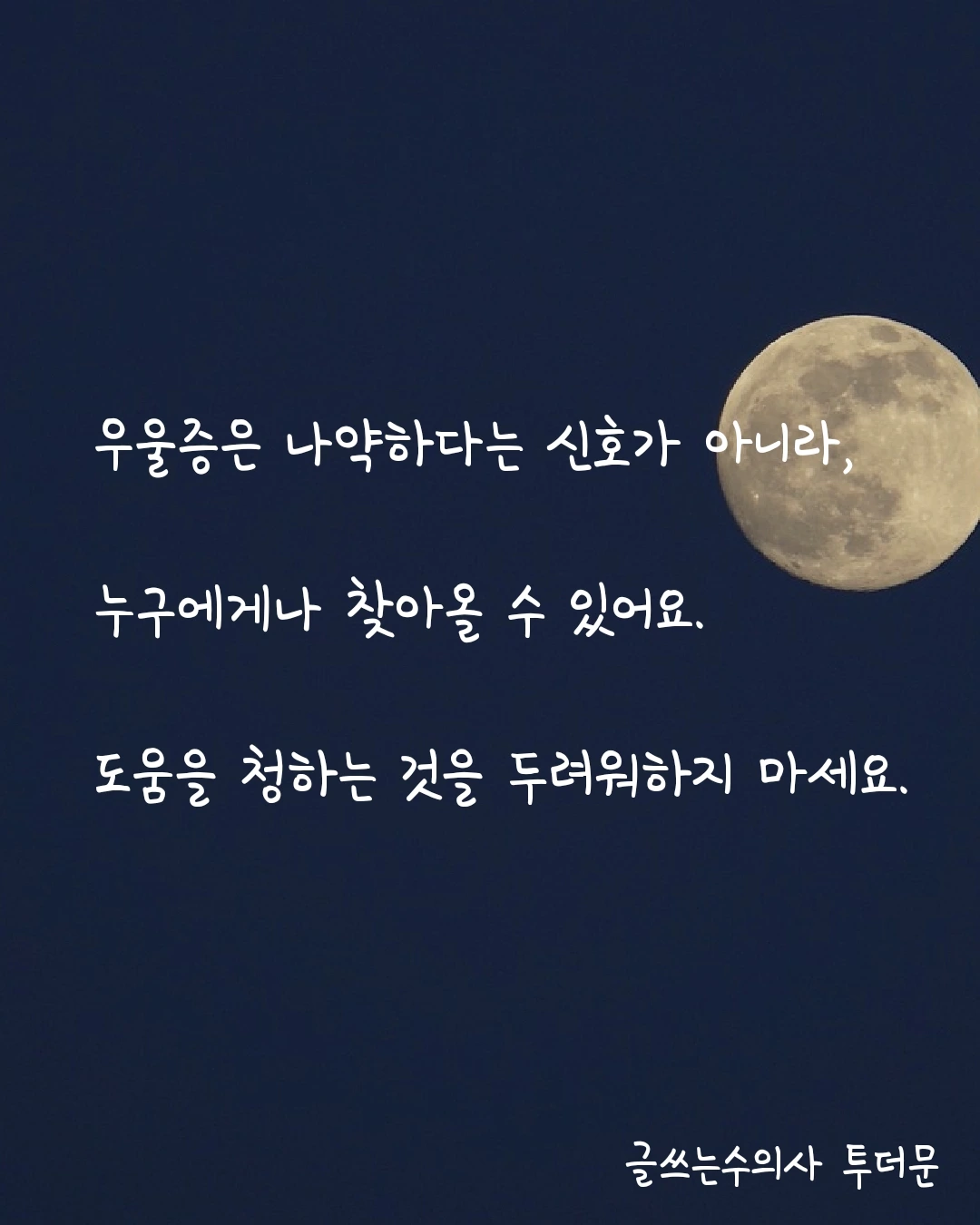 우울증은 나약하다는 신호가 아니라, 누구에게나 찾아올 수 있어요.