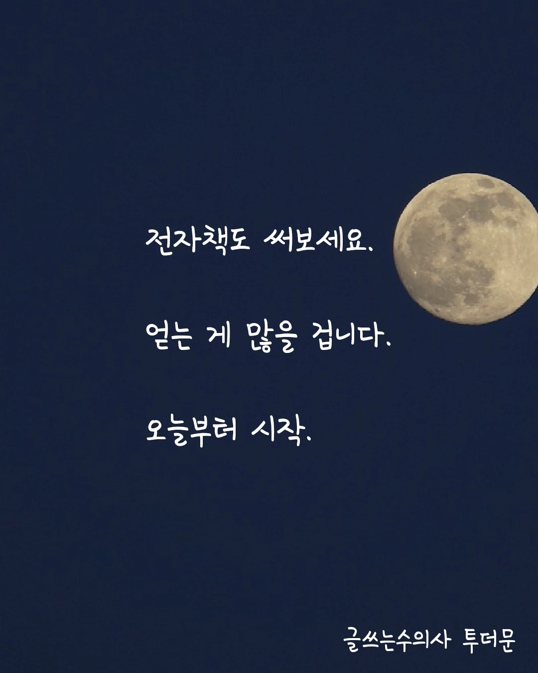 공감한다. 나 또한 전자책을 한 권 발간한 경험이 있다. 그리고 운 좋게도 전자책을 토대로 종이책 출간까지 성공했다. 전자책은 종이책에 비해 접근성이 좋다. 문턱 허들이 낮다. 자기가 가진
