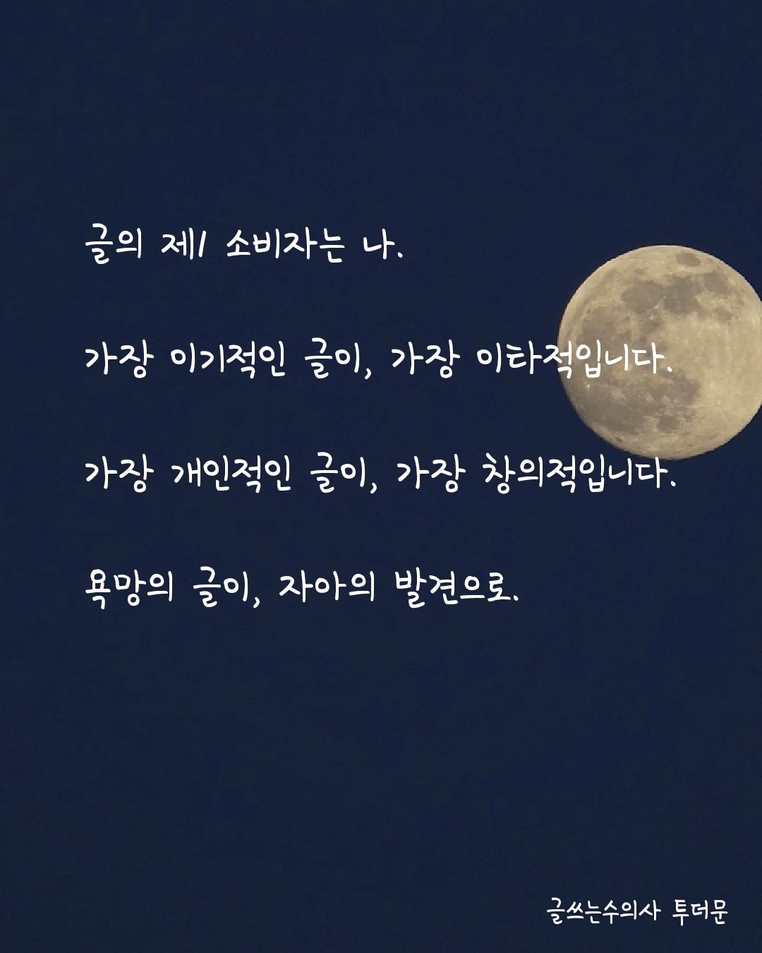가장 나다운 글을 쓰는 게 곧 가장 창의적이고 이타적일 수 있습니다.