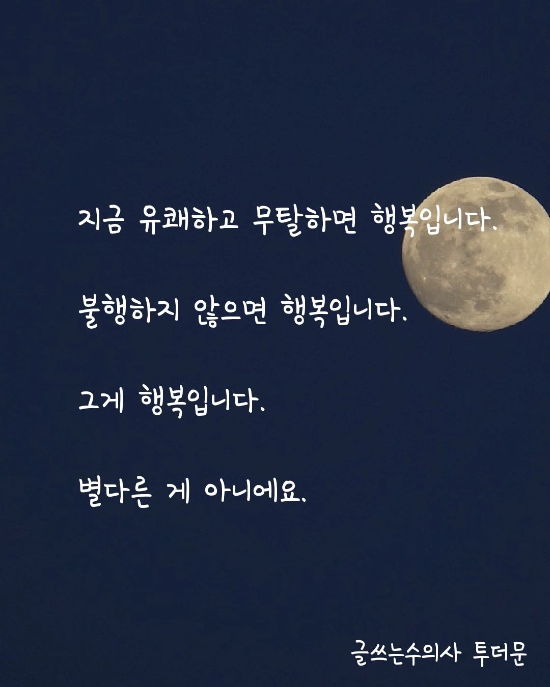 지금 유쾌하고 무탈하면 행복입니다. 불행하지 않으면 행복입니다. 그게 행복입니다. 별다른 게 아니에요.
