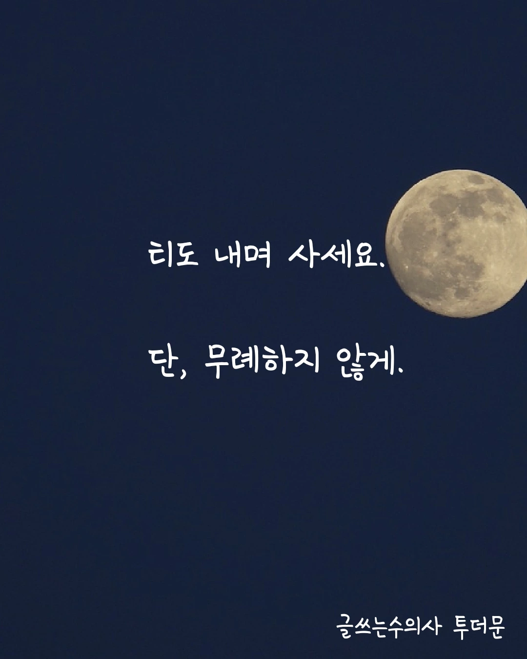 "티"를 내고 살자. 기분 나쁜 티도 내고, 공부한 티도 내고, 때론 행복한 티도 내면서 살자. "척" 하며 사는 것보다는 매우 권장할 일이다. - 작가 강원국. 사람마다 의견이 다를 수 있다. 무슨 티를