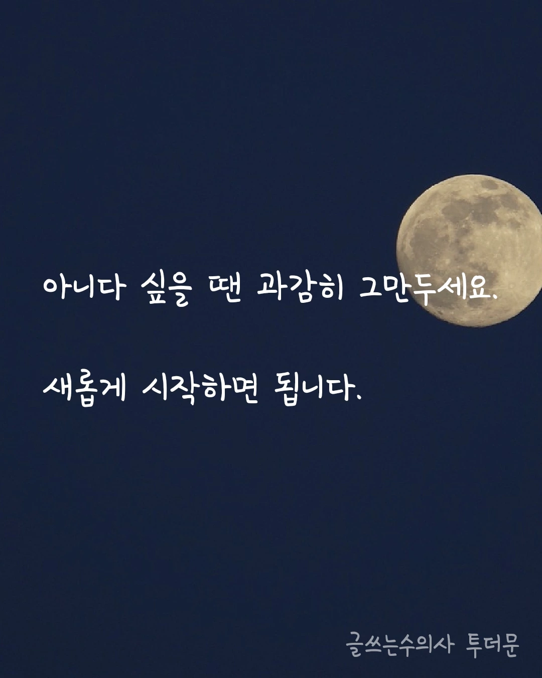 며칠 전 책 <퀴팅>을 다룬 영상이 생각납니다. 중도에 그만두는 것을 부정적으로 보는 사회적 시각이 존재하죠. 그런 사람을 낙오자, 패배자, 열정과 끈기, 의지력이 없고 나약한 사람으로 매도
