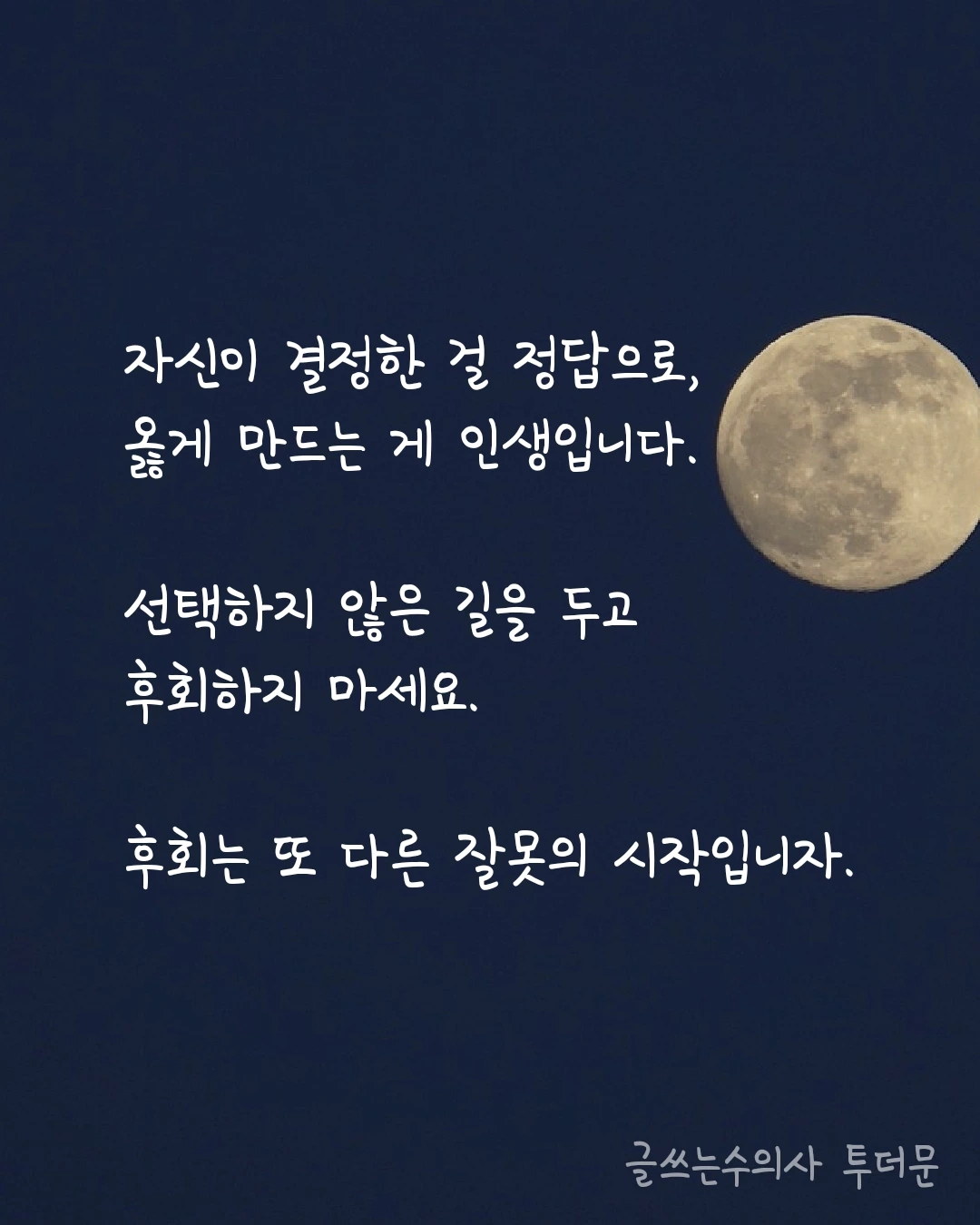 다른 길에 미련 갖지 말고 후회하지도 마세요.
