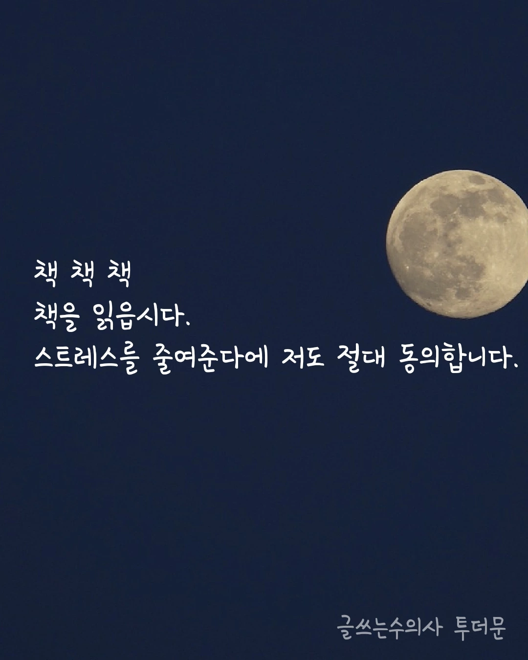 즉, 남이 아니라 혼자 만들어낸 주관적인 생각으로 들어차 있는 스트레스를 객관적인 사실과 긍정으로 충만한 책이 생각을 정리하고 씻어주는 역할을 한다.