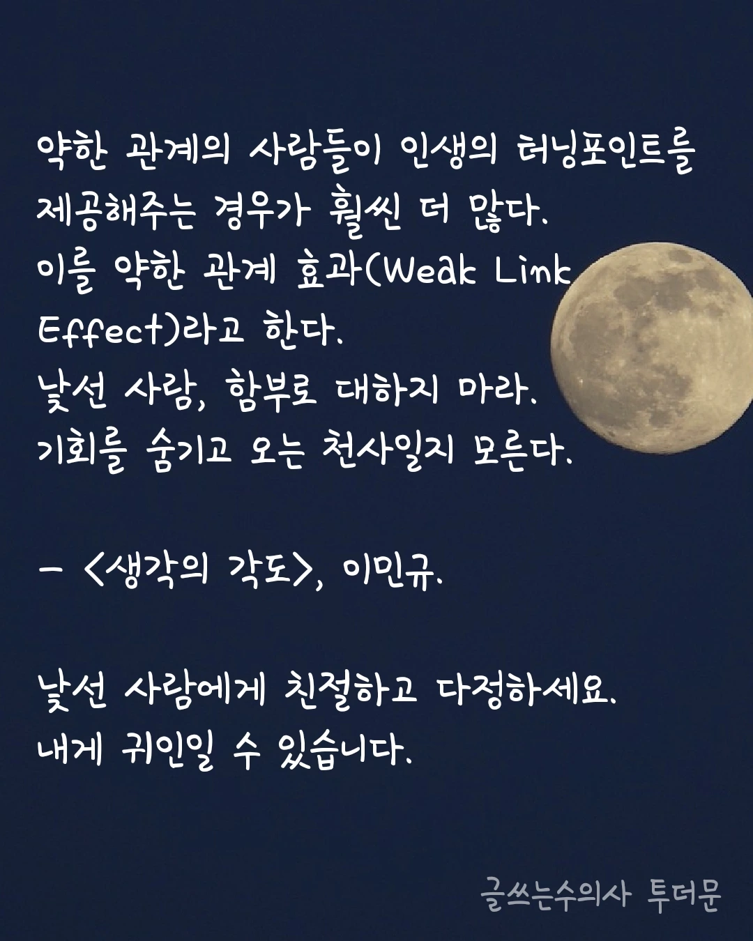 약한 관계의 사람들이 인생의 터닝포인트를 제공해주는 경우가 훨씬 더 많다.