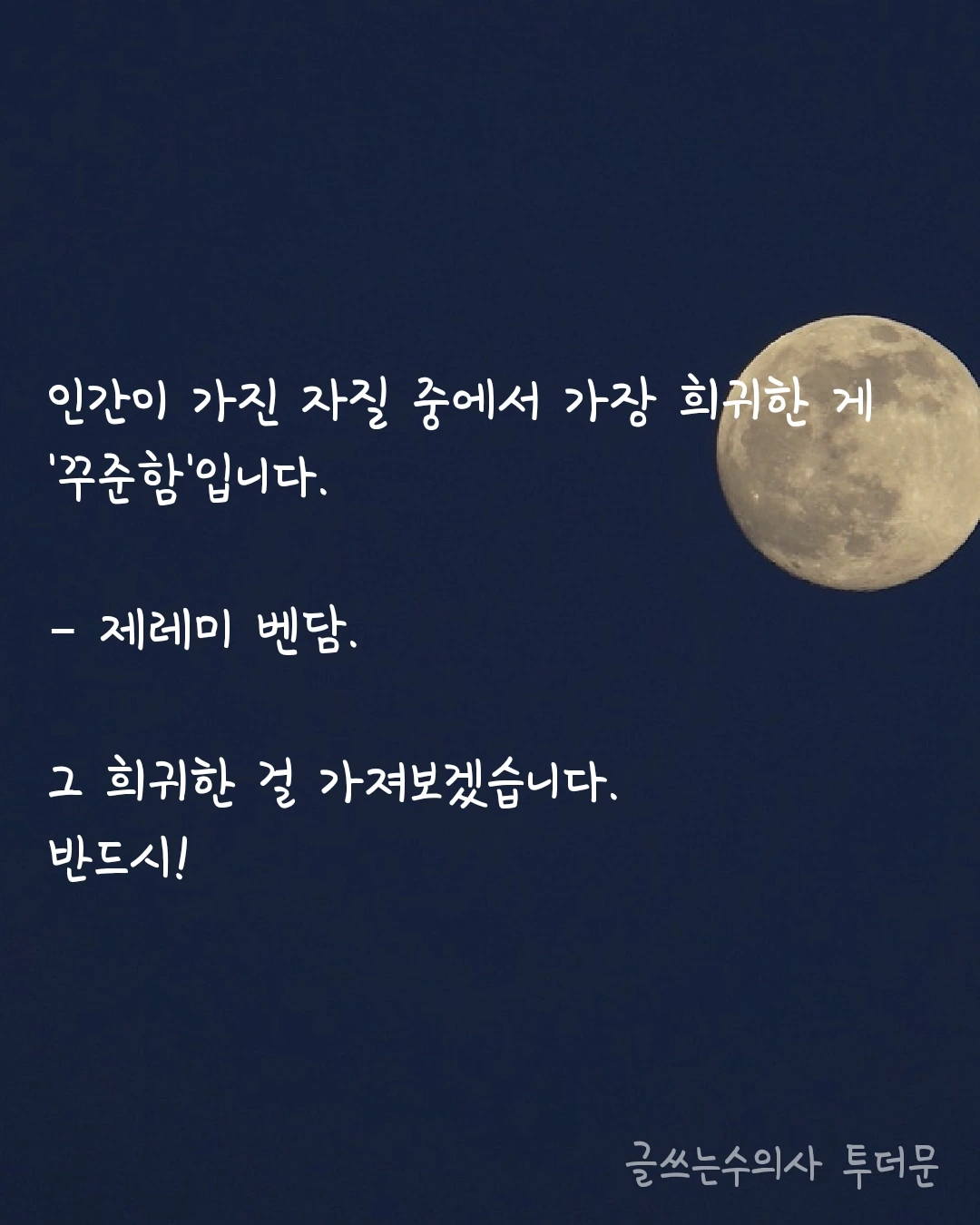 인간이 가진 자질 중에서 가장 희귀한 게 '꾸준함'입니다.