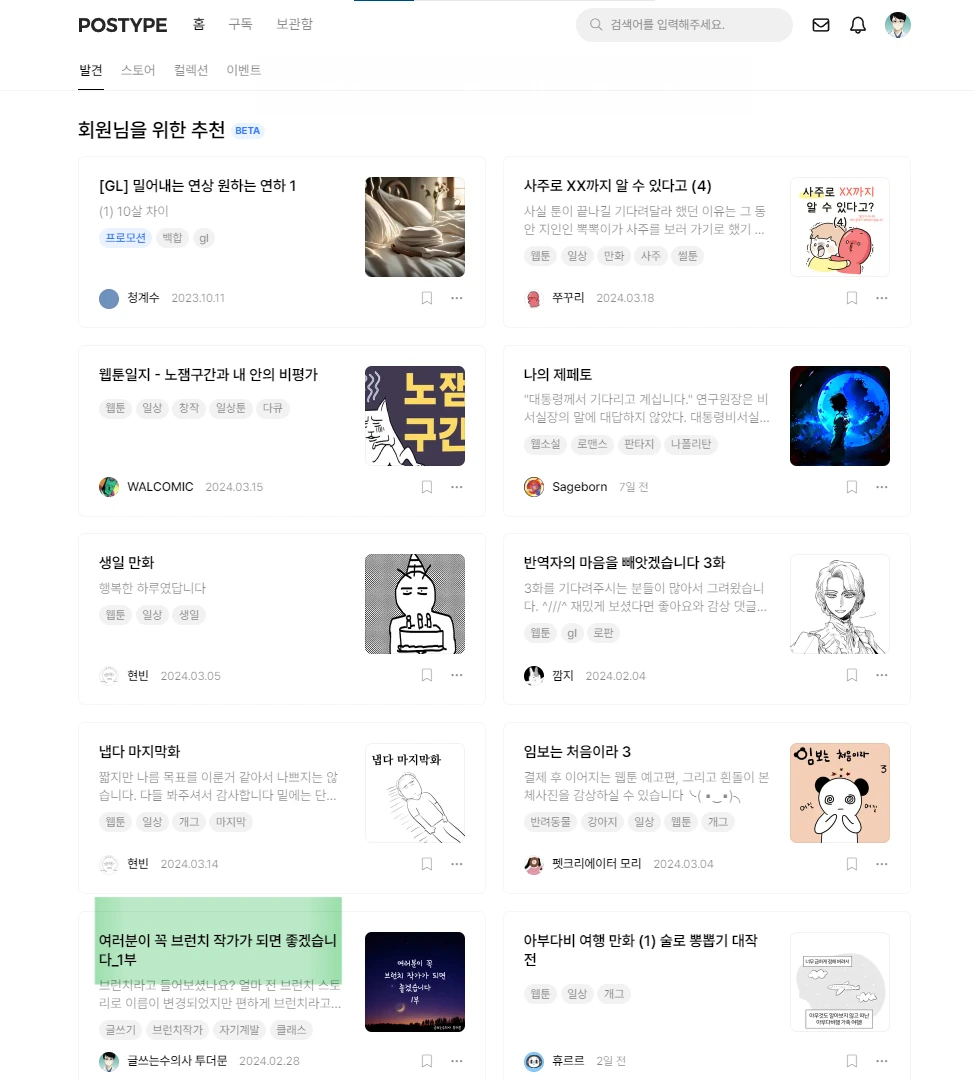 포스타입 메인 화면 추천 글 중 제 글이 보이네요