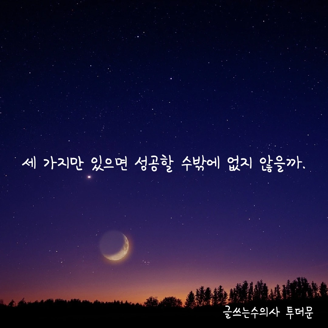 세 가지만 있으면 성공할 수밖에 없지 않을까.