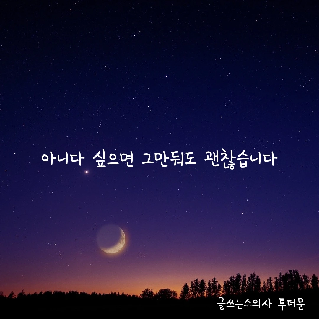 며칠 전 책 <퀴팅>을 다룬 영상이 생각납니다. 중도에 그만두는 것을 부정적으로 보는 사회적 시각이 존재하죠. 그런 사람을 낙오자, 패배자, 열정과 끈기, 의지력이 없고 나약한 사람으로 매도
