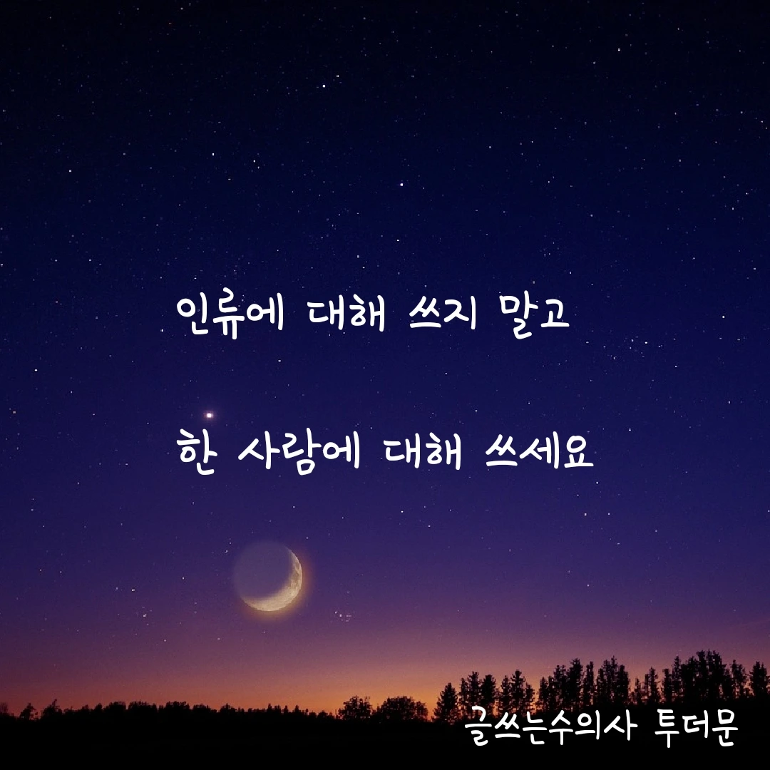 인류에 대해 쓰지 말고 한 인간에 대해 쓰세요