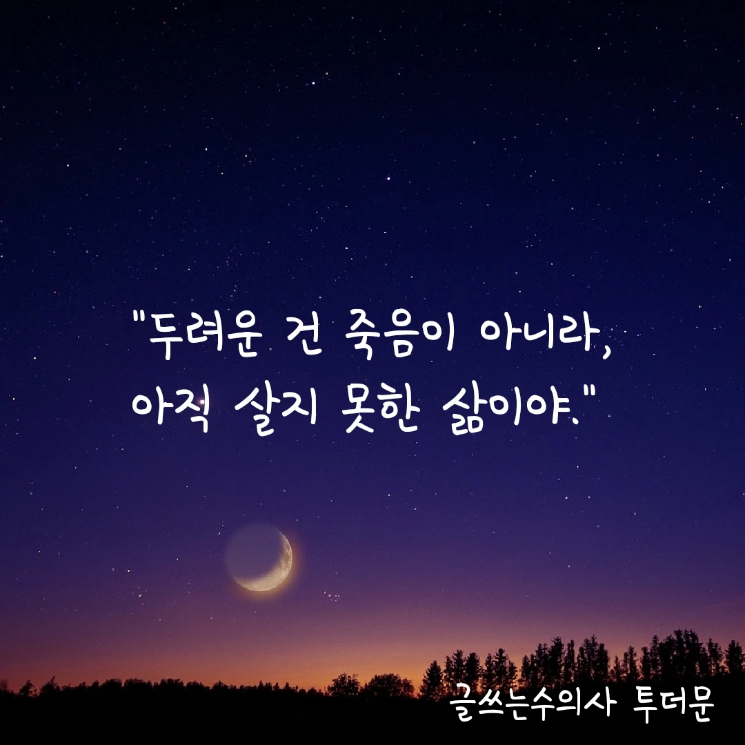 "두려운 건 죽음이 아니라, 아직 살지 못한 삶이야."