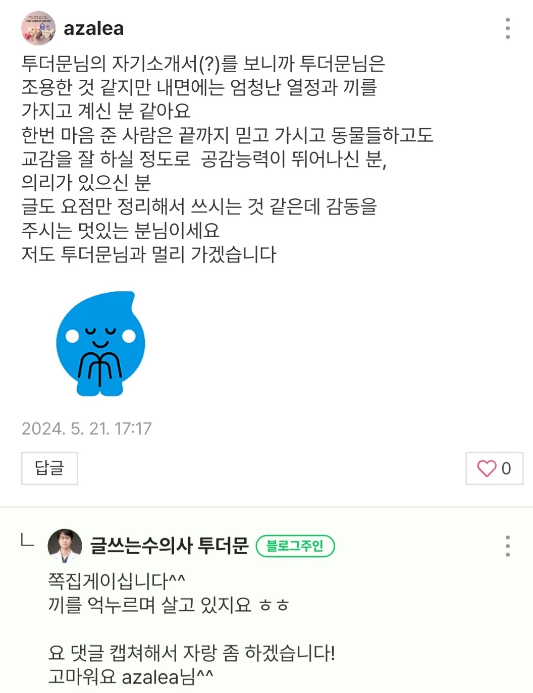 블로그 이웃 azalea님이 글을 보고 달아 주신 댓글입니다.