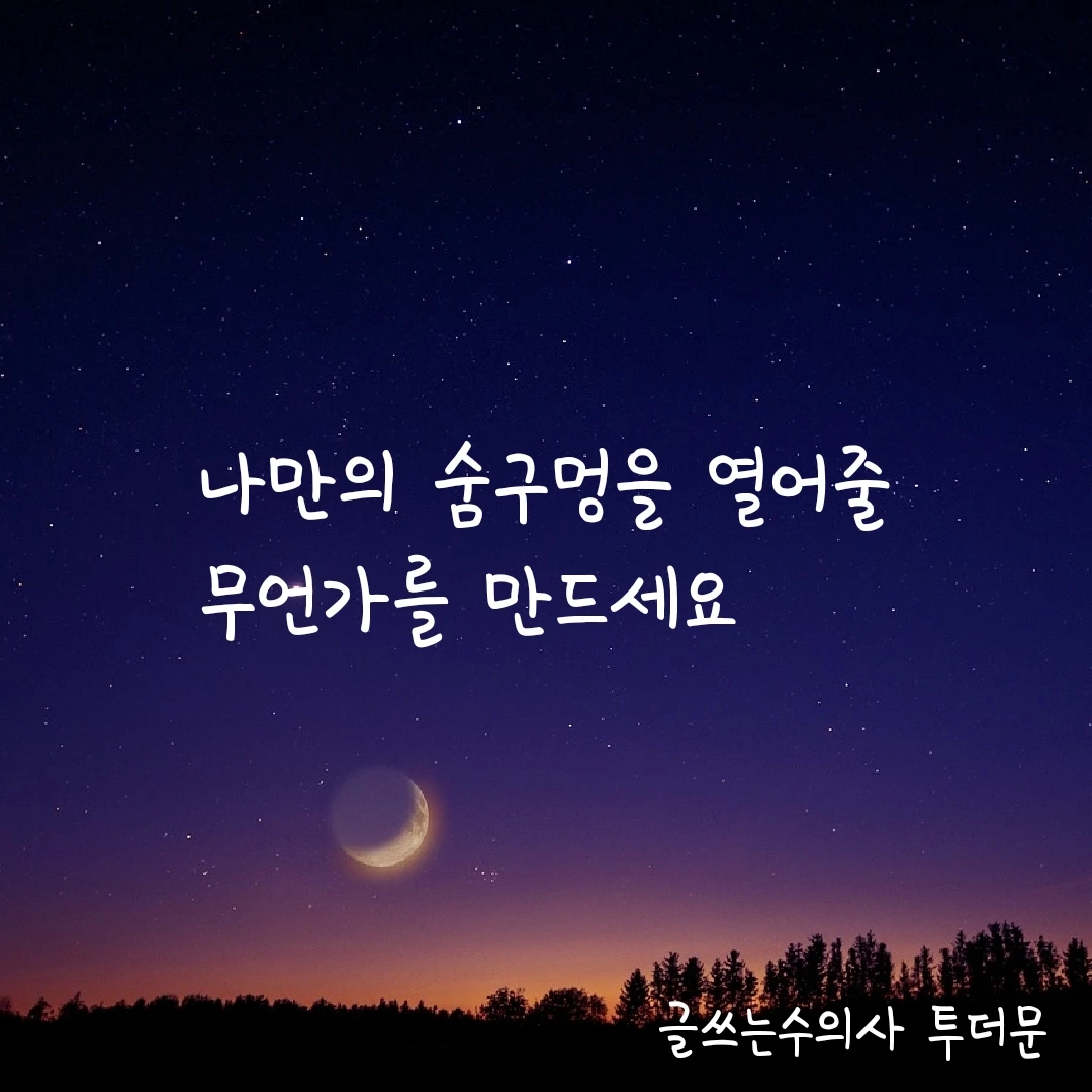 살아가면서 자신만의 숨구멍을 열어줄 무언가를 만드세요.