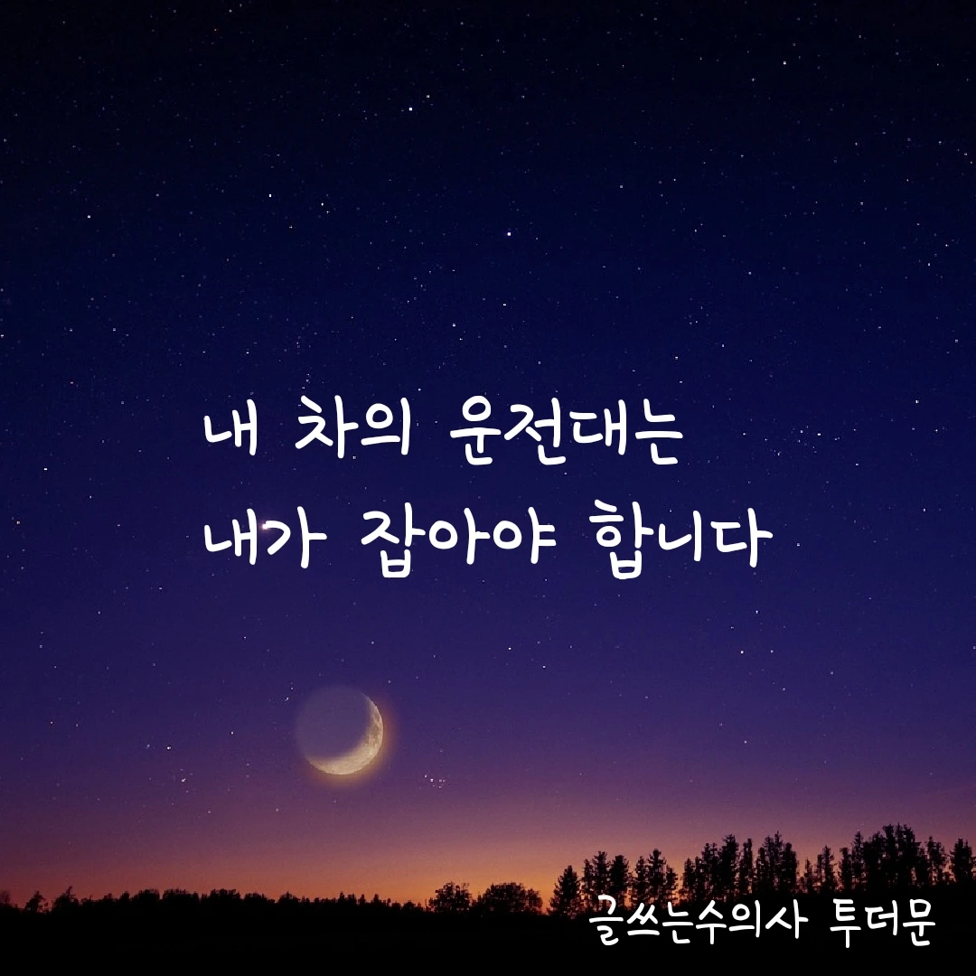 아무리 엄마가 중간에 내렸어도 그리고 아빠가 옆에서 아무리 시끄럽게 하고 방해를 해도 운전대를 절대 놓치지 말고 네가 원하는 목적지까지 네 힘으로 가야 돼.