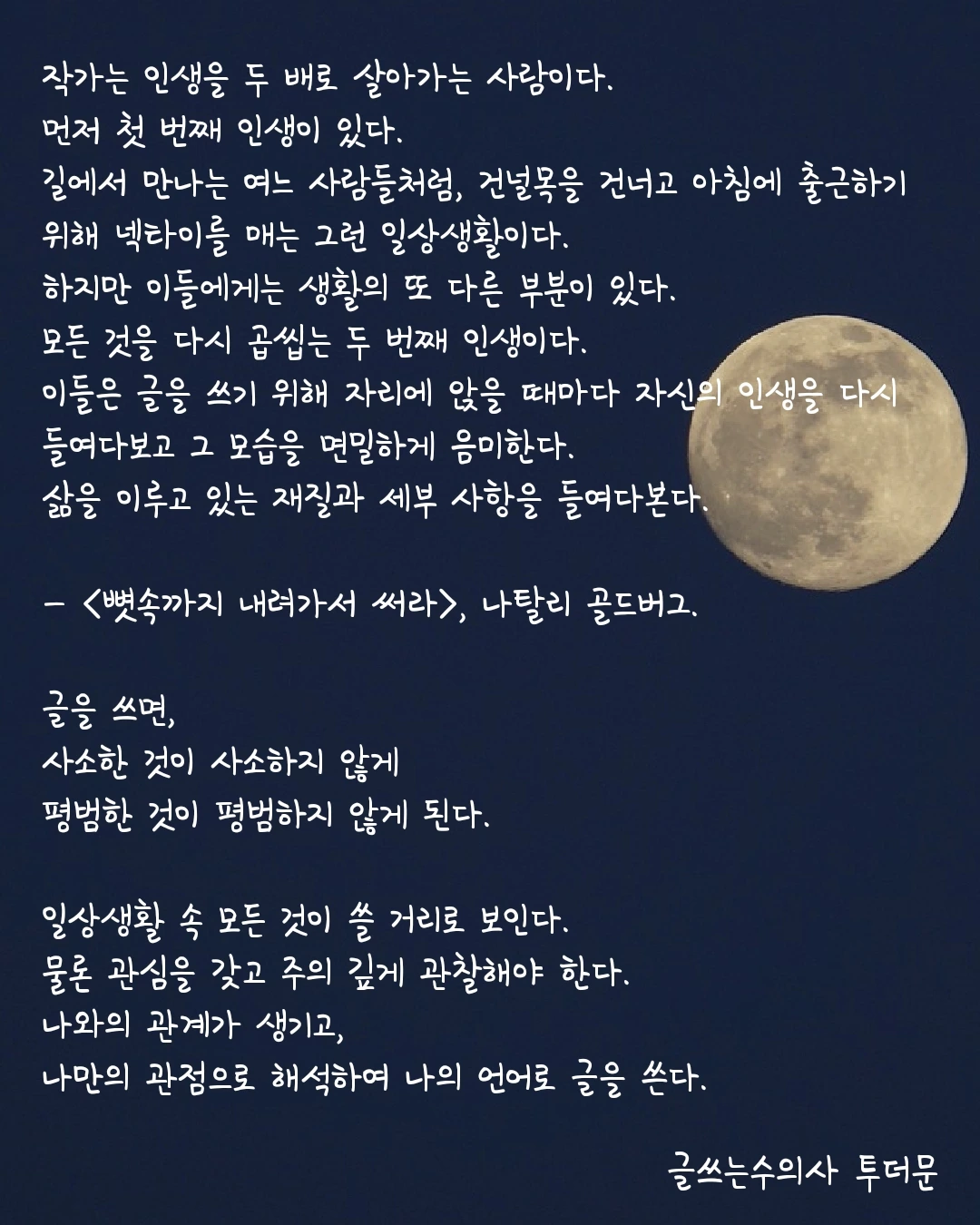 글을 쓰면, 사소한 것이 사소하지 않게 평범한 것이 평범하지 않게 된다.