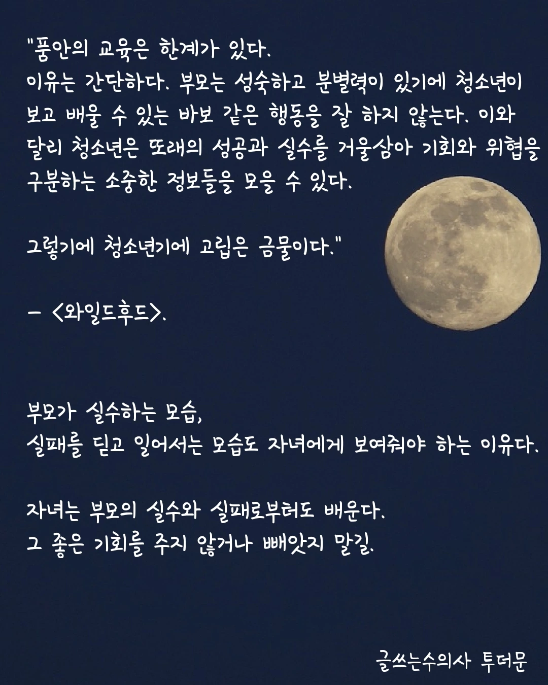 "품안의 교육은 한계가 있다.