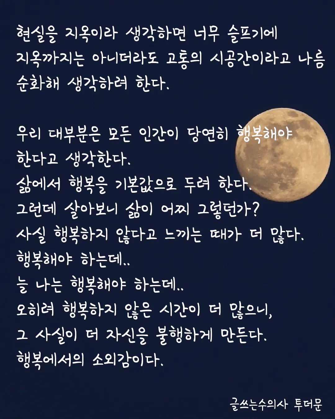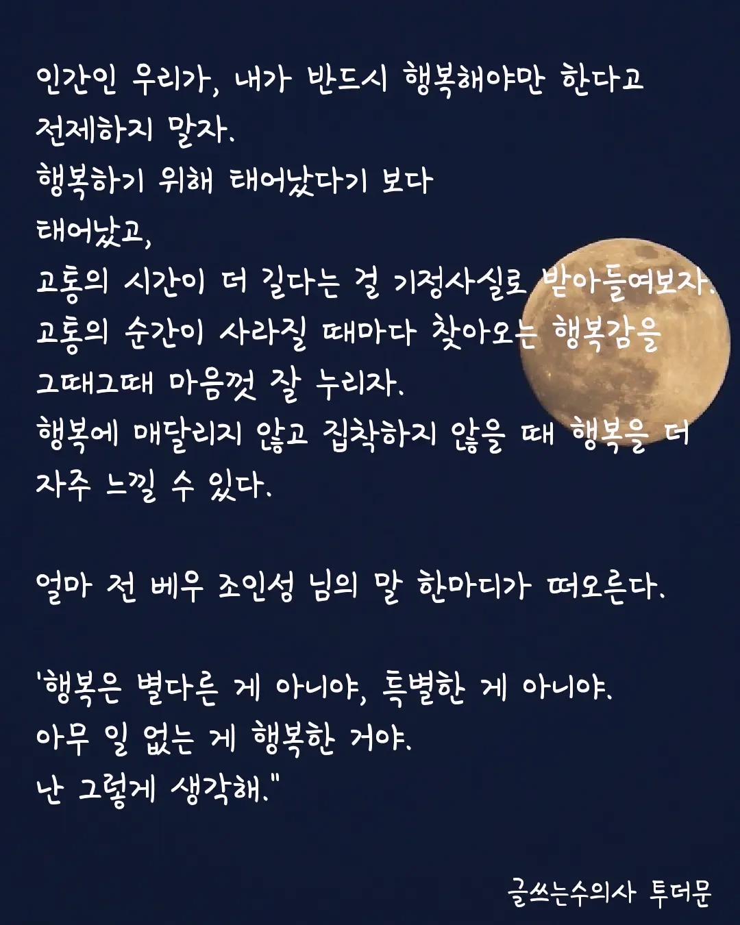 인간인 우리가, 내가 반드시 행복해야만 한다고 전제하지 말자.