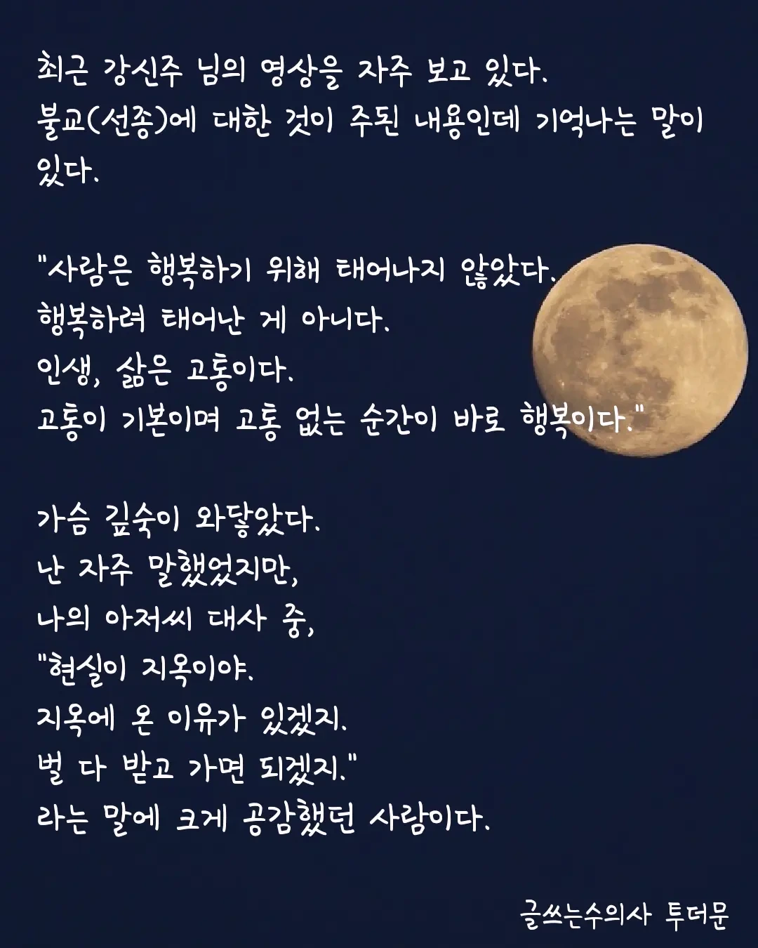 고통이 기본이며 고통 없는 순간이 바로 행복이다."