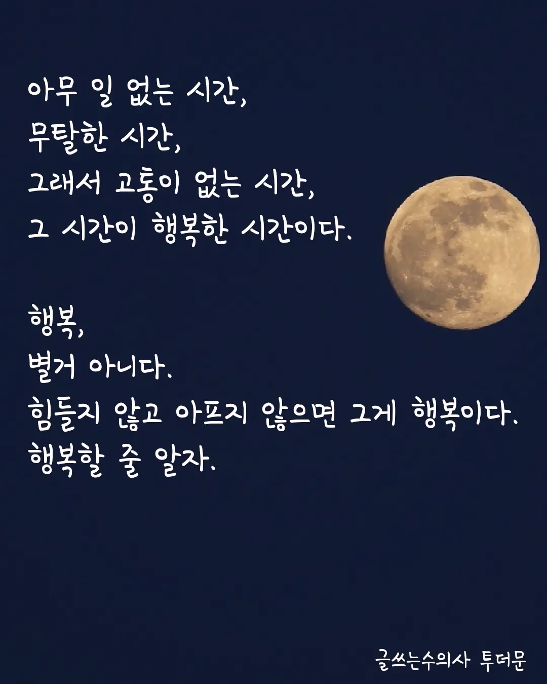 힘들지 않고 아프지 않으면 그게 행복이다.