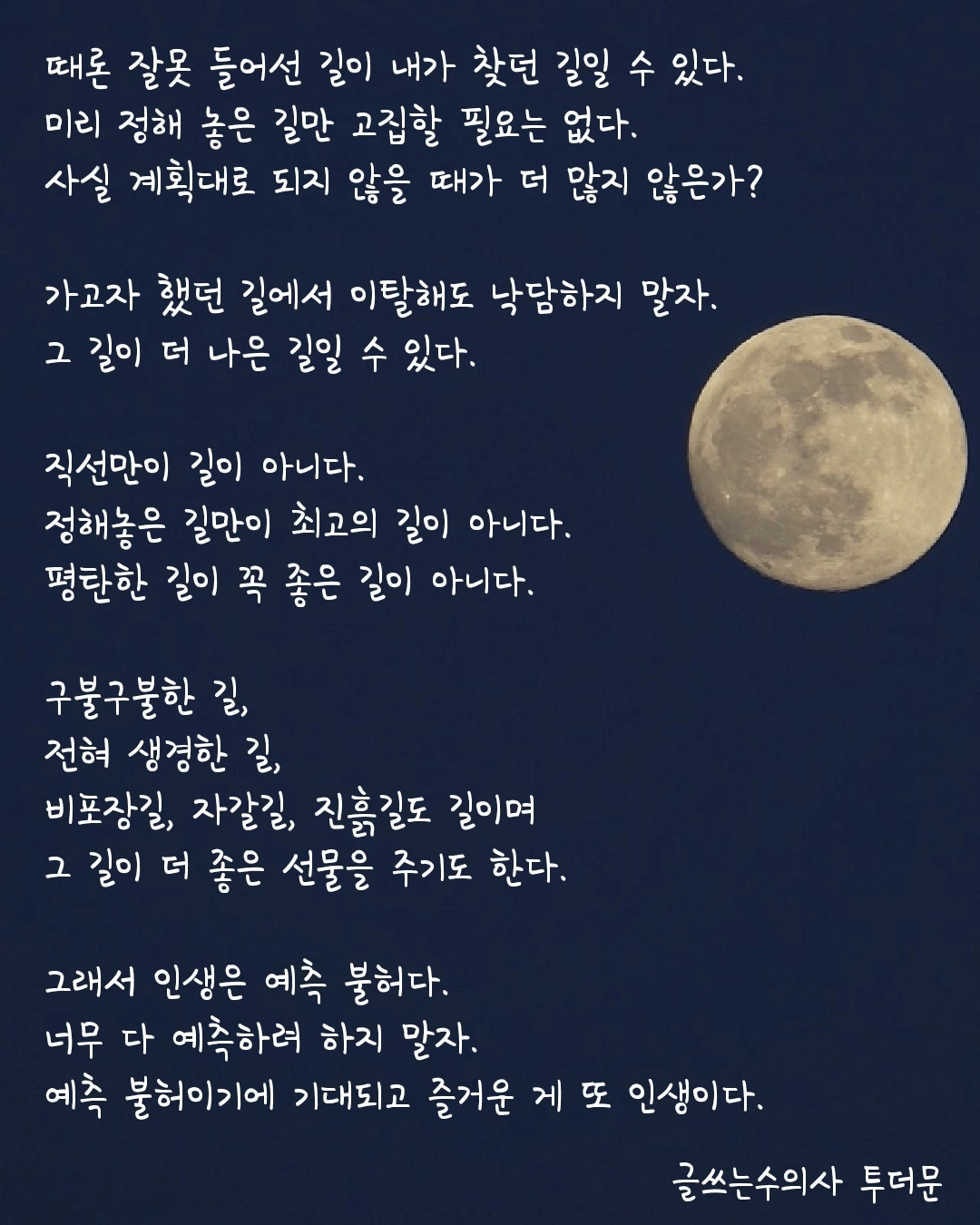 이거 정말인 것 같아. 내 인생에 가장 아름다운 것들은 내가 길을 잃었을 때 만날 수 있었어.