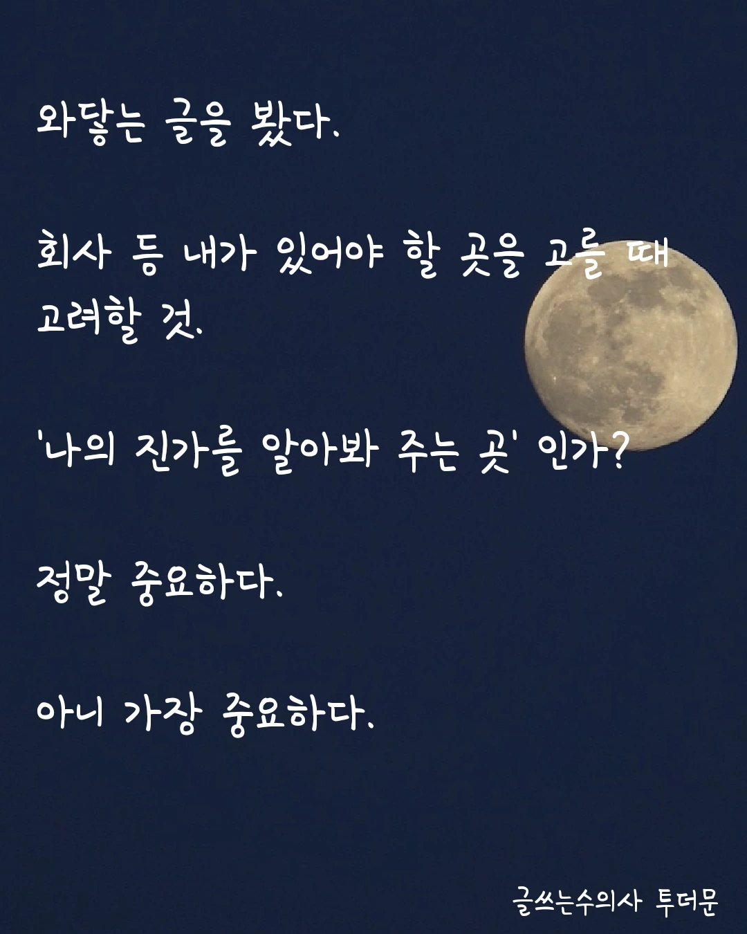 회사 등 내가 있어야 할 곳을 고를 때 고려할 것.