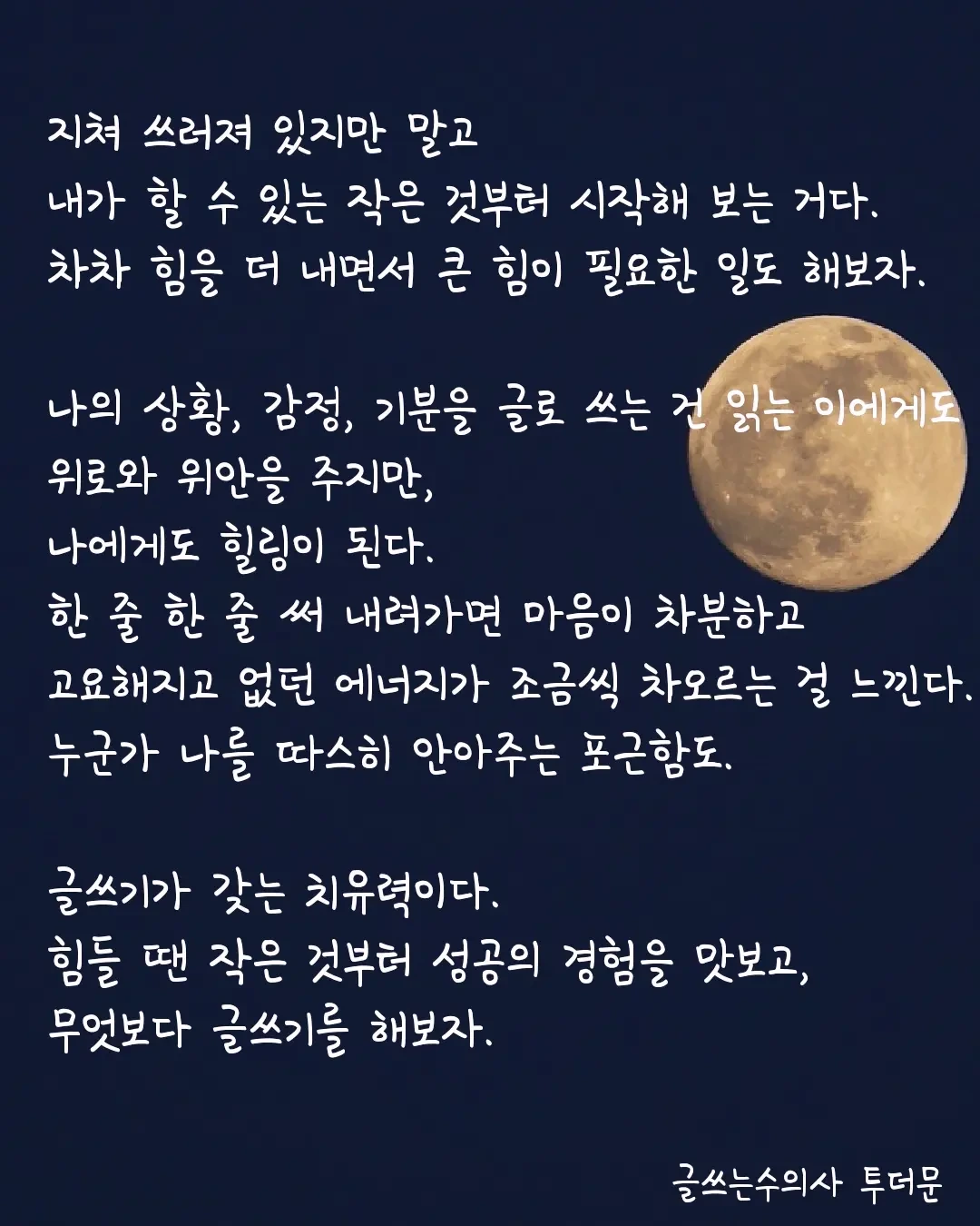 글쓰기를 통해 머릿속 쓰레기통을 비워줘야 한다. 내 생각과 감정을 글로 쏟아내지 않으면 머릿속에 그것들이 꽉 차 복잡하고 멍해진다. - 작가 강원국. 글을 쓰면 뒤엉킨 생각과 복잡한 마음이