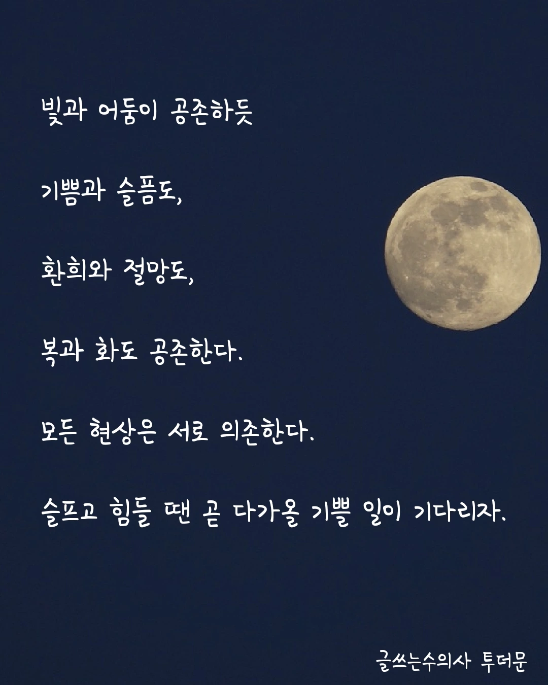 모든 사건은 행운이자 불운이다. (중략) 모든 현상은 서로 의존하고 있다. - 틱낫한, 류시화 옮김, <마음에는 평화 얼굴에는 미소> 힘들고 슬프다고 좌절하거나 포기하지 말고, 기쁘고 즐겁다고