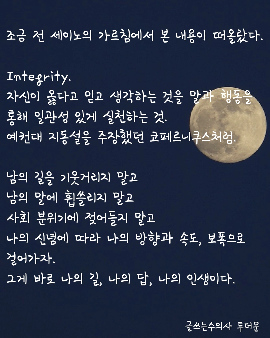강신주 님 영상을 보다 귀한 문구를 하나 얻었다. 장자의 '도행지이성'. 길은 우리가 걸어가는 데서 완성된다. 걷지 않으면 길은 만들어지지 않는다. 걸어가야 길이 만들어진다. 마음이 있어야