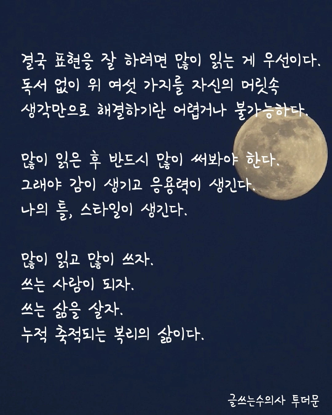 많이 읽은 후 반드시 많이 써봐야 한다.