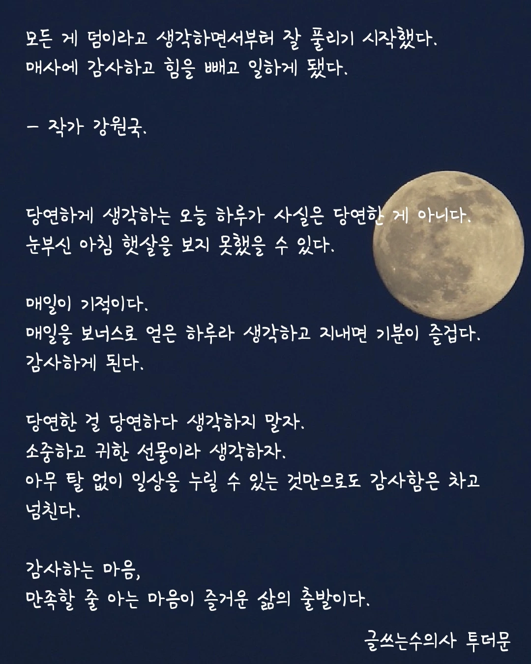 당연하게 생각하는 오늘 하루가 사실은 당연한 게 아니다.