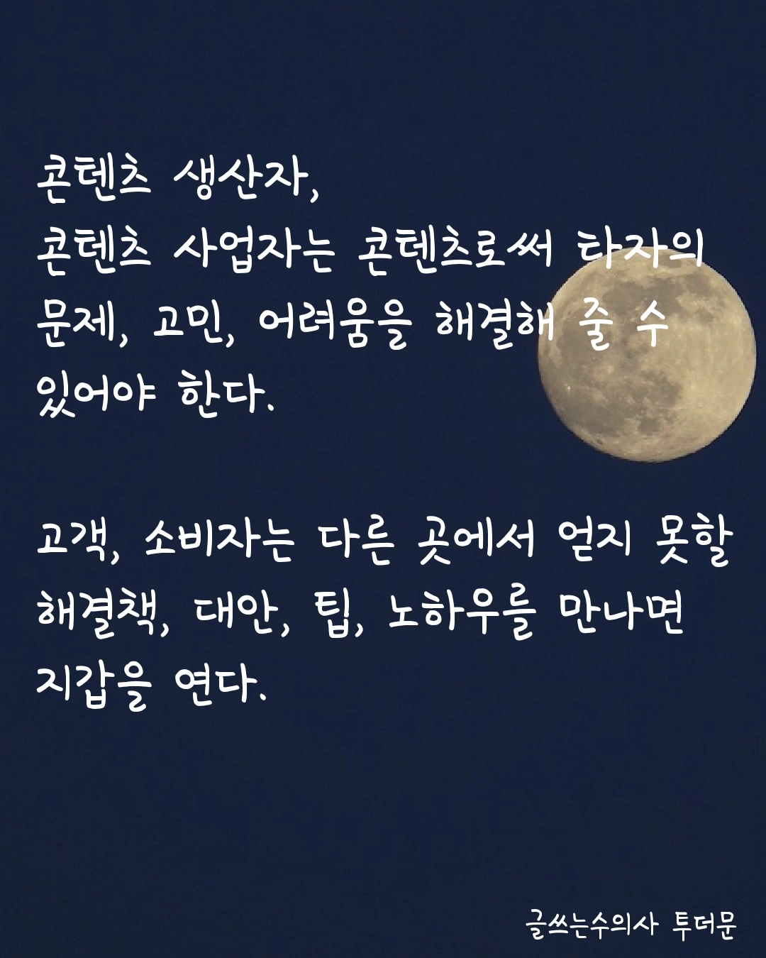 콘텐츠 사업자는 콘텐츠로써 타자의 문제, 고민, 어려움을 해결해 줄 수 있어야 한다.