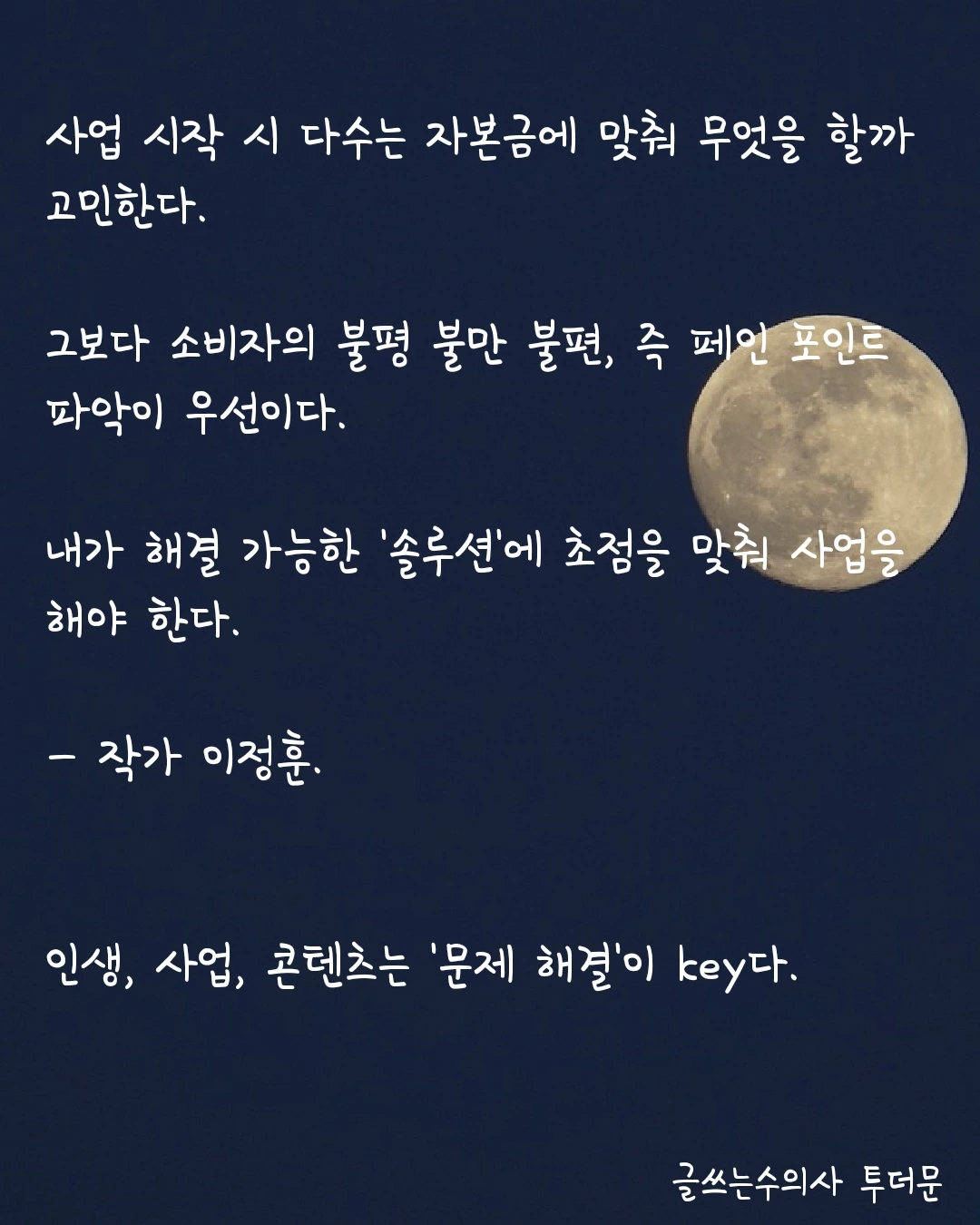 내가 해결 가능한 '솔루션'에 초점을 맞춰 사업을 해야 한다.