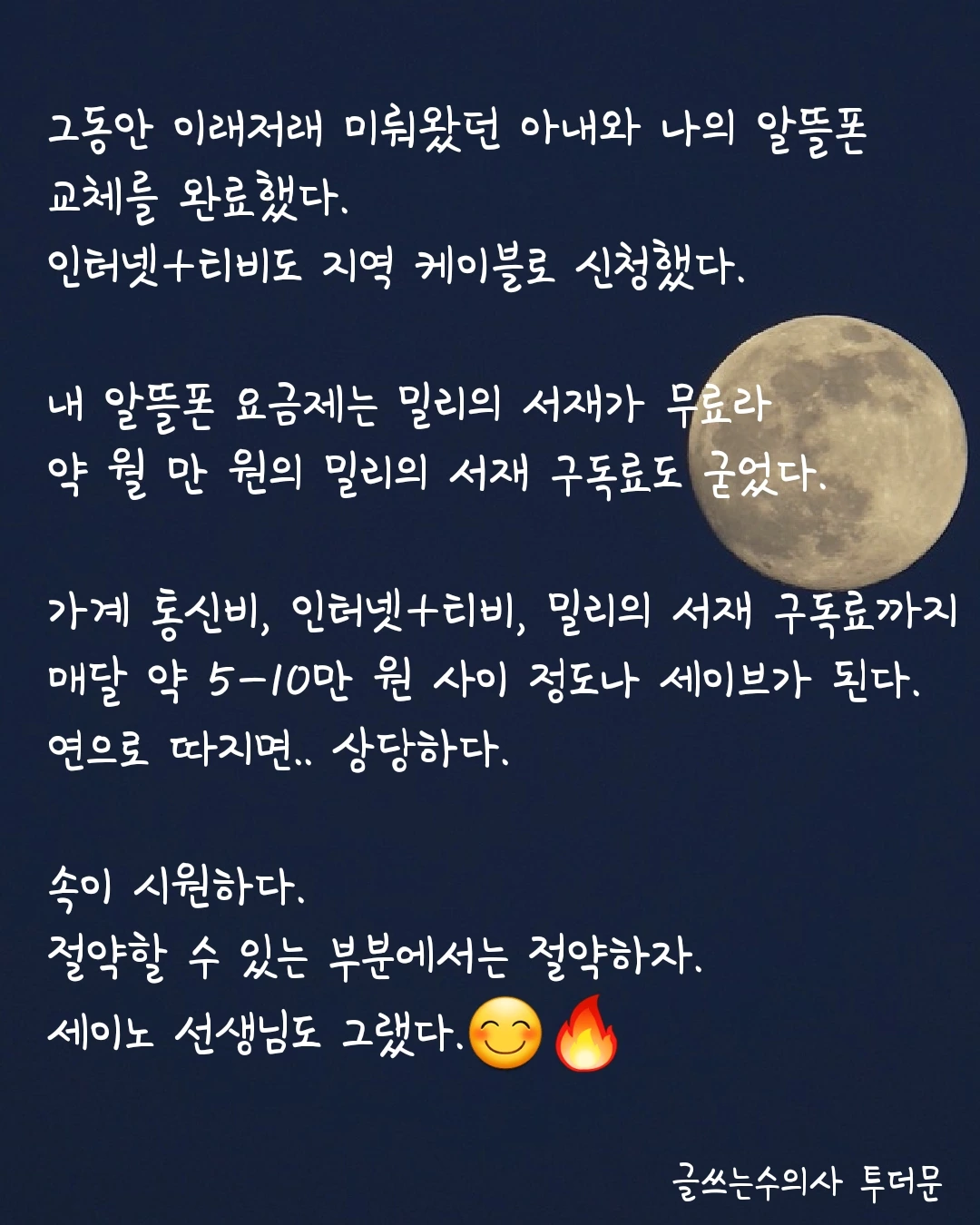 가계 통신비, 인터넷+티비, 밀리의 서재 구독료까지 매달 약 5-10만 원 사이 정도나 세이브가 된다.