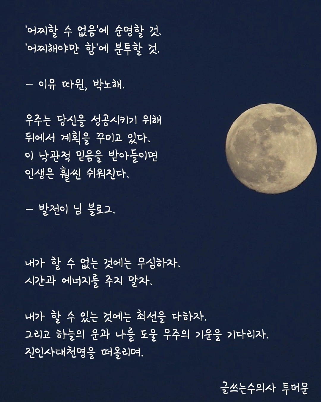 무심하자. 남 신경 쓸 시간에 나를 더 신경쓰자. 물론 내 사람, 내 주위 사람, 사회적 약자에겐 무심하지 말자. 그 외의 사람에겐 무심하자.
