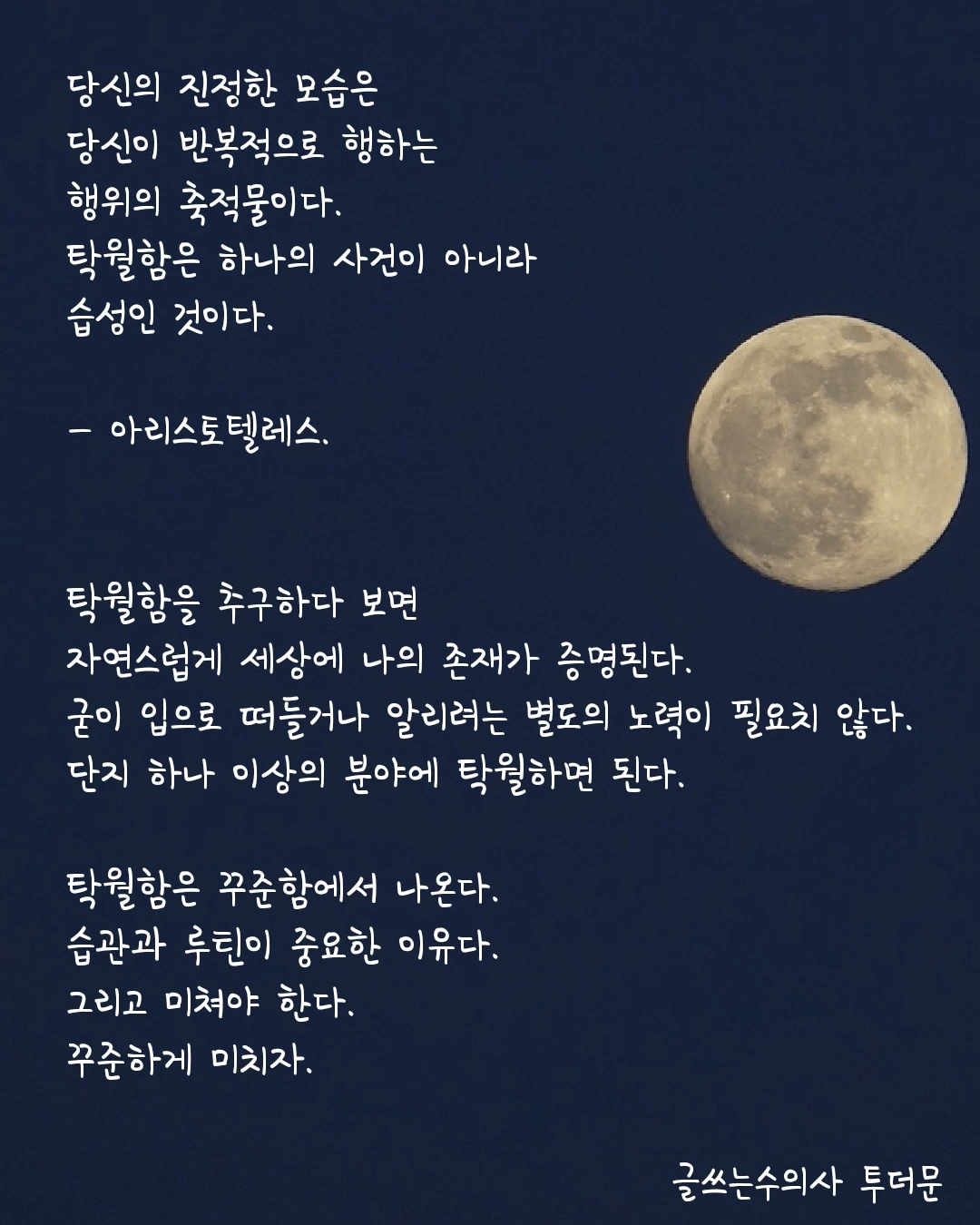 누군가 나에게 "당신에게 인생은 무엇이냐?'라고 묻는다면, 나는 '인생은 탁월함을 향한 전진이자 탁월함을 향해 도를 닦아 가는 여행길이다'라고 답하고 싶습니다. - <나는 탁월함에 미쳤다>, 공