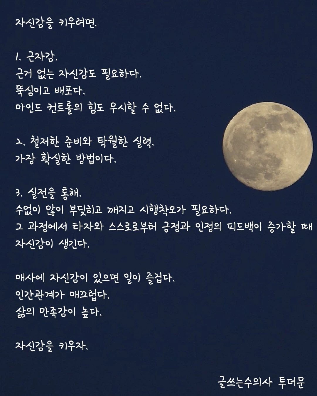 그 과정에서 타자와 스스로로부터 긍정과 인정의 피드백이 증가할 때 자신감이 생긴다.