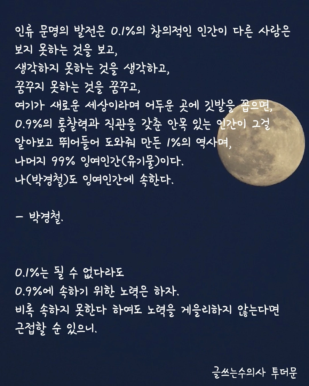 인류 문명의 발전은 0.1%의 창의적인 인간이 다른 사람은 보지 못하는 것을 보고,