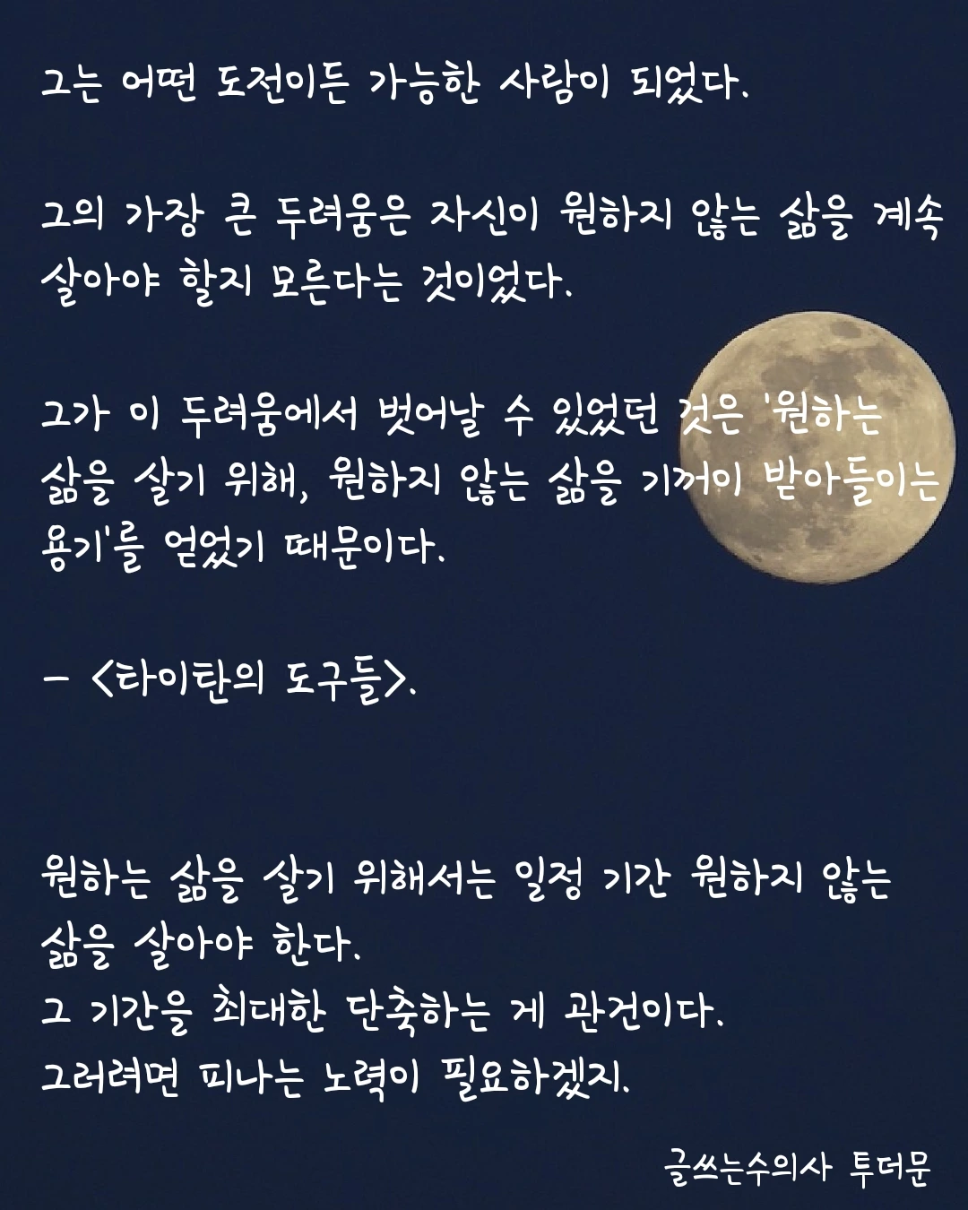 원하는 삶을 살기 위해서는 일정 기간 원하지 않는 삶을 살아야 한다.