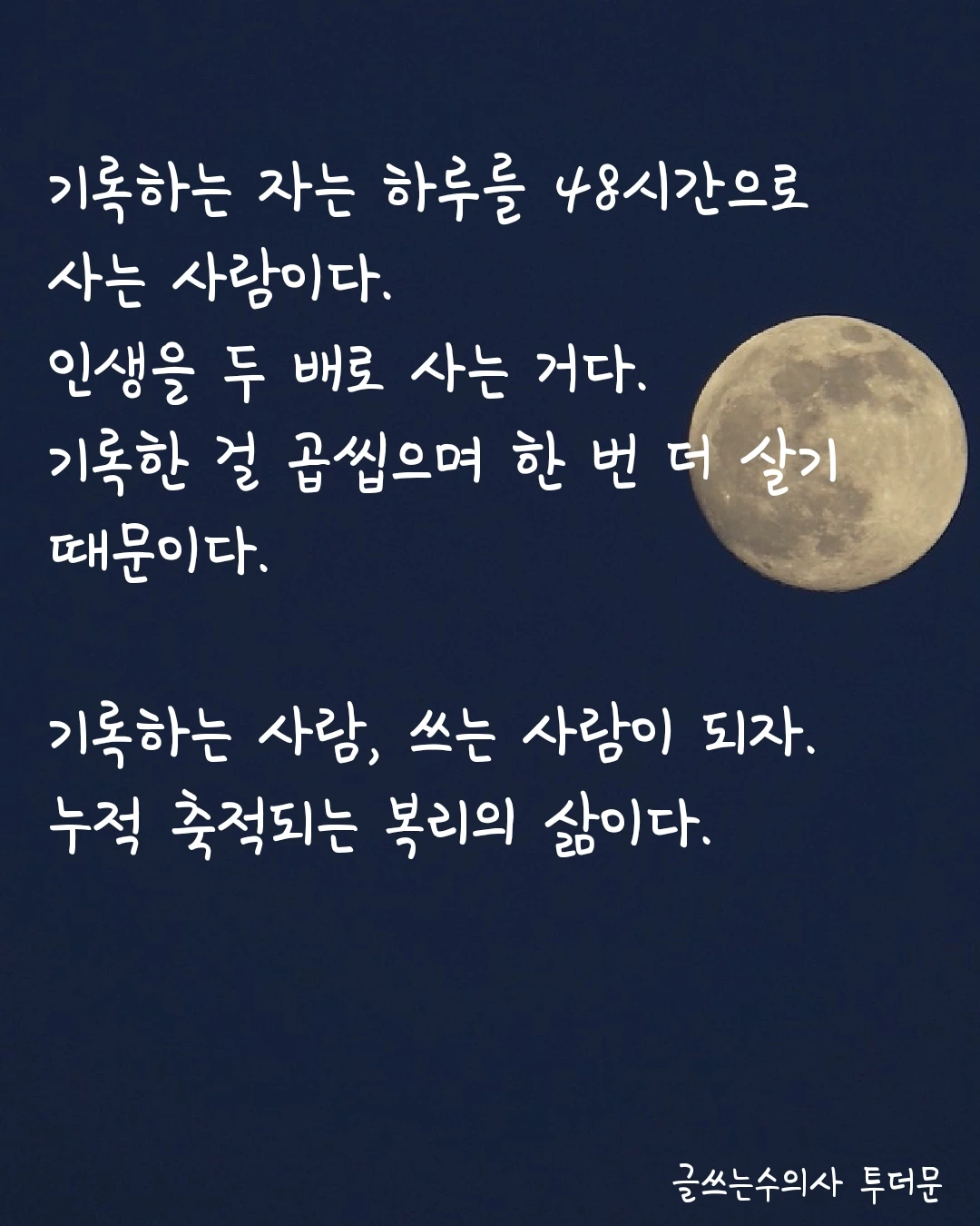 우리의 삶은 모든 순간순간이 귀하다. 이것을 알리는 것이 바로 작가가 해야 할 일이다. 작가는 의미 없어 보이는 삶의 작은 부분들마저도 역사적인 것으로 옮겨 놓을 수 있는 능력이 있다. 작가